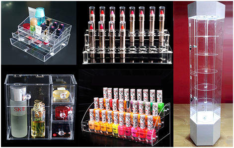 化妝品亞克力展示類:有護膚品、唇膏、指甲油、多層次展示架。簡單大氣、透光性好、結(jié)構穩(wěn)定、不易破碎。