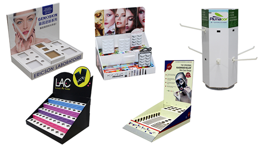 化妝品PDQ展示類:有面膜、假眼睫毛、指甲油、唇膏等。根據(jù)產(chǎn)品特點設計不同的層次造型,實用型強,印刷畫面豐富。