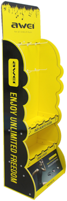 3.創(chuàng)意造型立體紙展示架,具有個(gè)性風(fēng)格,印刷畫面豐富,雙面的弧形側(cè)板,亮麗的顏色,襯托出耳機(jī)產(chǎn)品的時(shí)尚感,吸引人們的目光,讓品牌能夠快速的得到人們的認(rèn)知。
